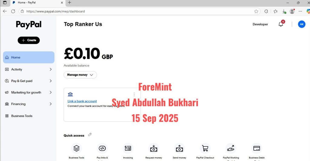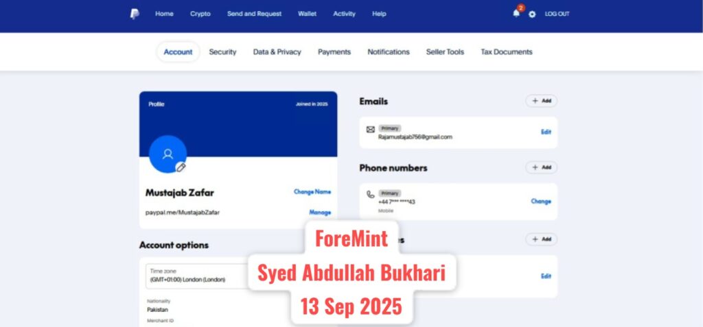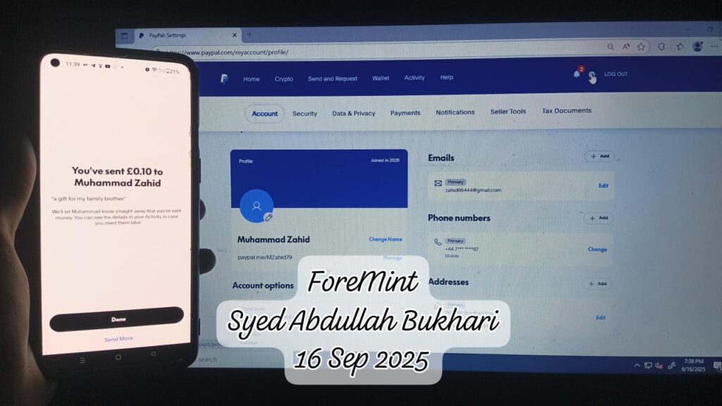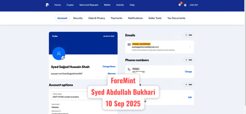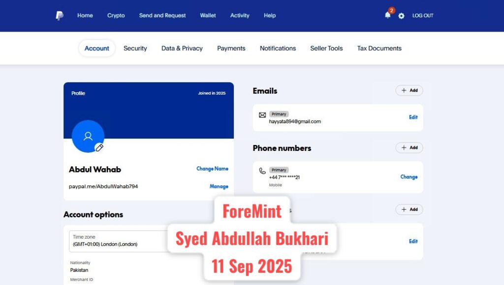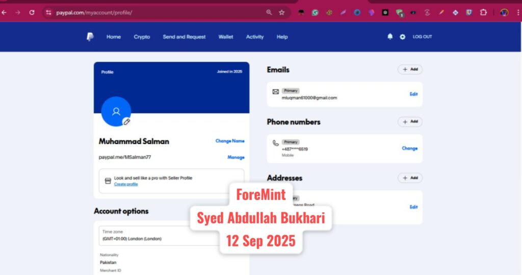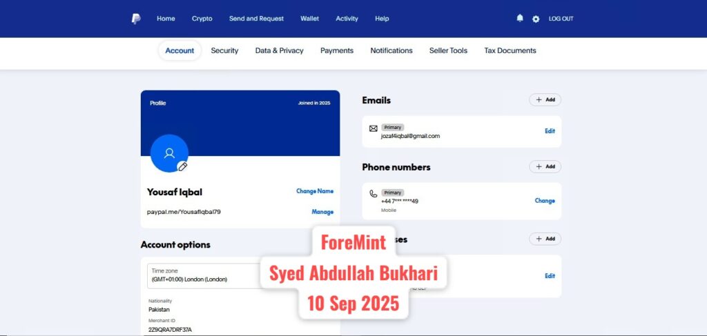 PayPal Personal Account – 16 Sep 2025 – ForeMint